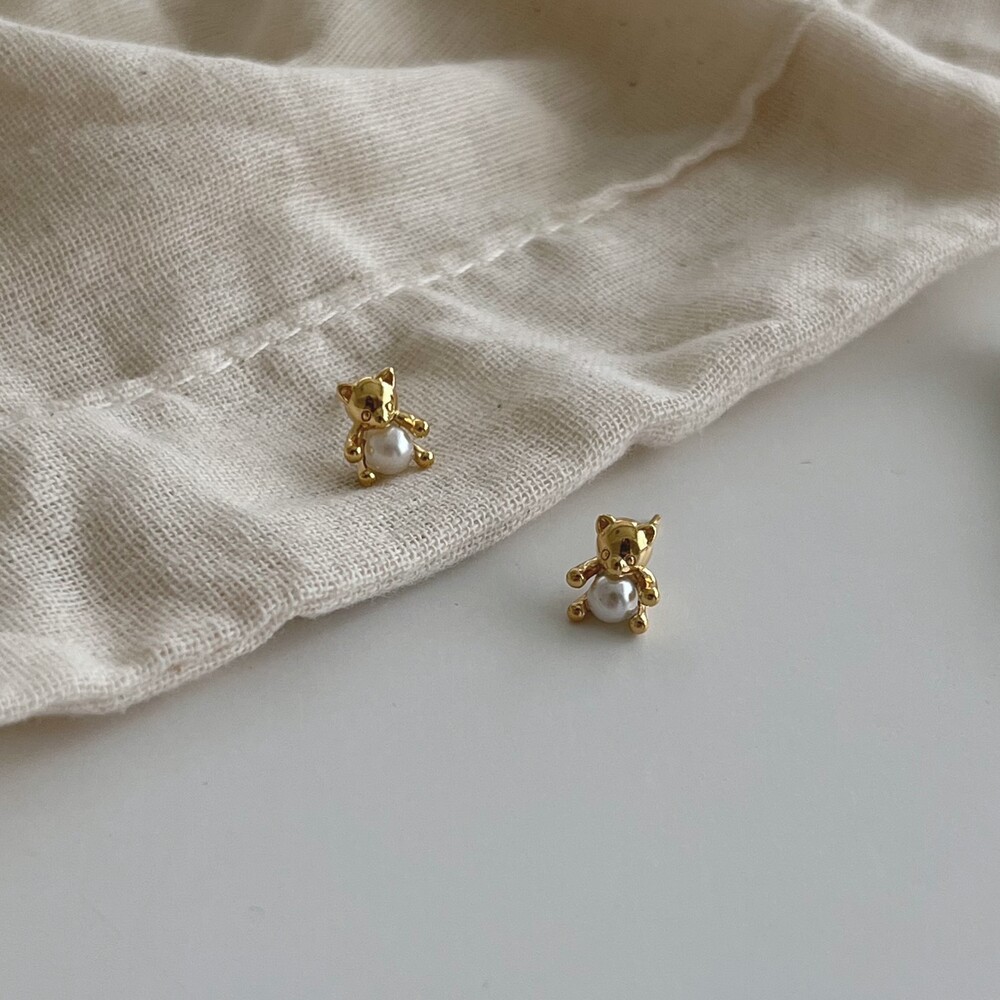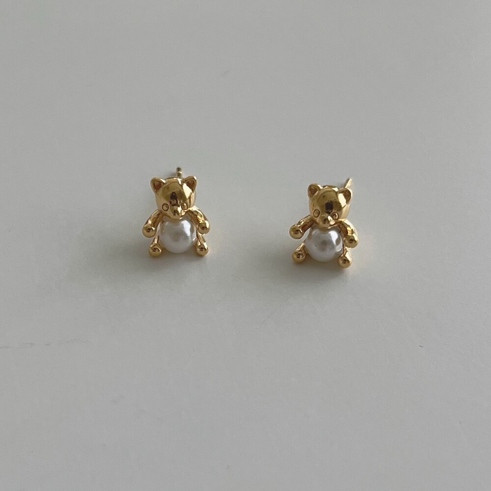 [ Silver925 ] Mini pearl bear earring